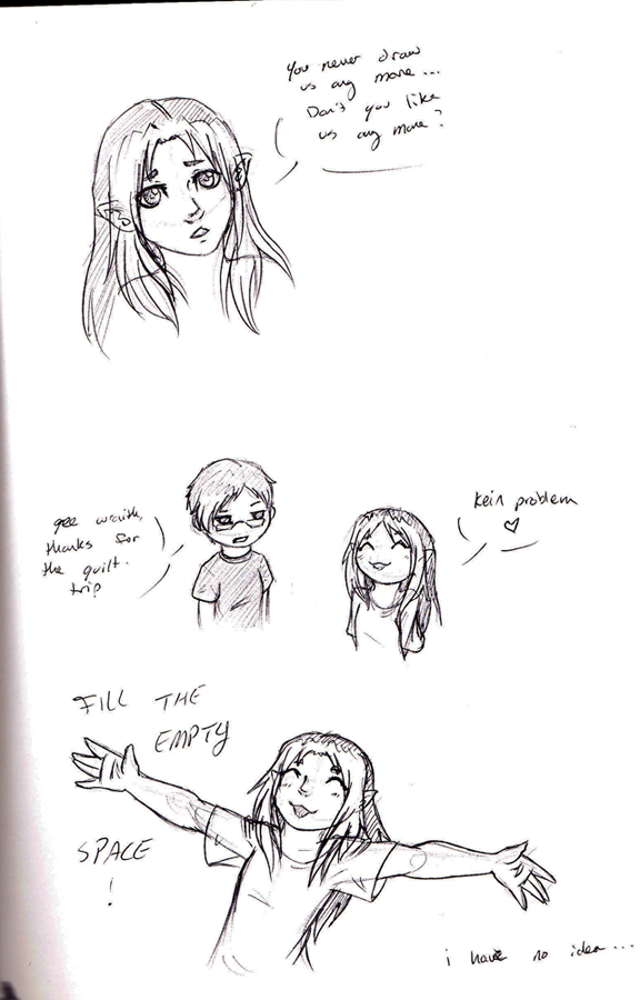 the first sketch was me guilt tripping/ poking fun at myself for putzing around and neglecting my characters and the blog